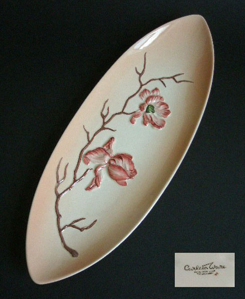 Here is a 1950s Carlton Ware long plate in the Magnolia design and the pink and brown colourway. Great for