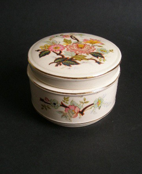 Here is a very pretty powder bowl by Sadler in a floral design. This has a lid and would be useful in the bathroom or on the dressing table for storing many things. Moulded to the base SADLER ENGLAND and has the painters initial in gold.