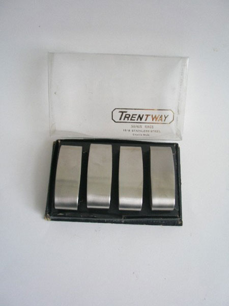 1960's TRENTWAY STAINLESS STEEL NAPKIN RINGS IN ORIGINAL BOX