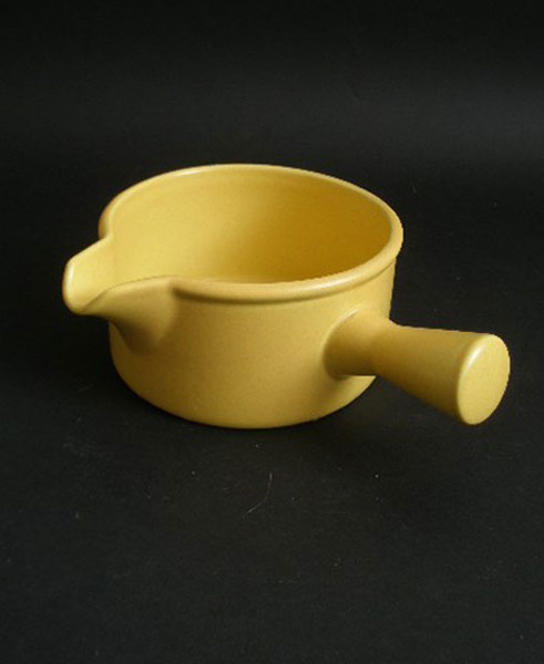 Dating to the 1970s is this gravy boat by Midwinter. It has a matt yellow glaze and belongs to the Flowersong pattern designed by Jessie Tait. Impressed to the base MIDWINTER ENGLAND