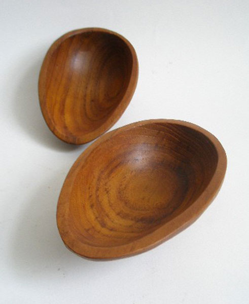 Here is an unusual pair of teak wood avocado dishes. They have been turned into an avocado shape making them a great way to serve avocados.