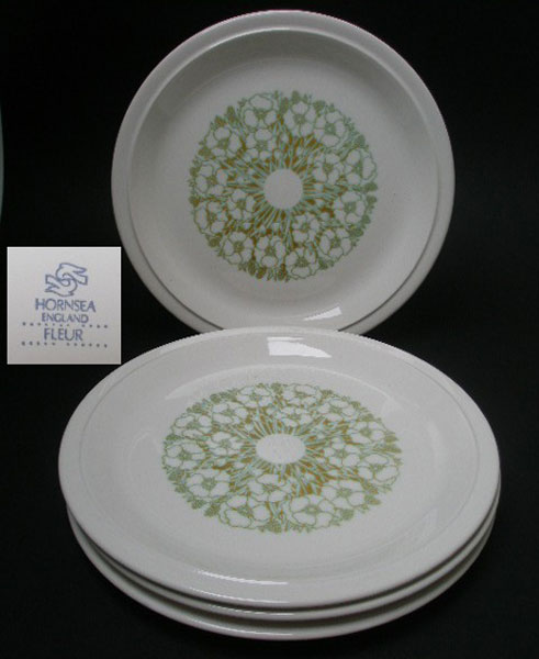 Dating to the 1970s are these four dinner plates by Hornsea pottery in the Fleur design by Sara Vardy. We have another set of dinner plates and other items in the same range. Marked to the base HORNSEA FLEUR ENGLAND. (Price is for the four)
