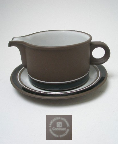 Here is a gravy boat and stand from the renowned Hornsea pottery and designed by the Queensberry and Hunt partnership. Together in 1974 Lord Queensberry and Martin Hunt produced this very successful range of tableware in the Contrast pattern. It has been added to the V&A Museum. Marked to the base LANCASTER VITRAMIC (Hornsea symbol) CONTRAST HORNSEA ENGLAND.(We have other matching items)