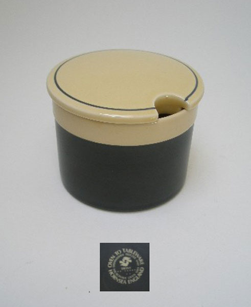 Here is a conserve pot by the renowned Hornsea Pottery in the Ebony design. This is black with a cream rim and lid. It has an opening for a spoon.Marked to the base OVEN TO TABLEWARE HORNSEA ENGLAND EBONY DISHWASHER FREEZER AND MICROWAVE OVEN SAFE