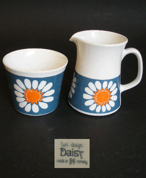 Dating to the 1960s is this jug and sugar bowl by Figgjo Flint of Norway. They are in the highly sought after Turi Gramstad Oliver design Daisy.Marked to the base Turi Design Daisy made in FF Norway.