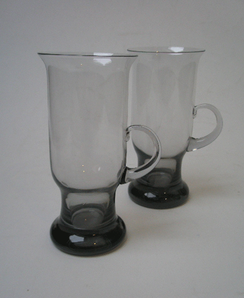 Dating to 1982 is this pair of Irish coffee glasses designed by Frank Thrower during the Wedgwood Dartington amalgamation. These are in -midnight- and were named - Seamus -.