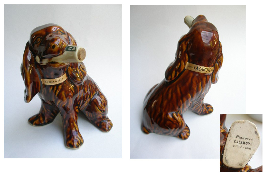 VINTAGE KERMANN BORDEAUX LIQUEUR CAZANOVE CERAMIC DOG DECANTER