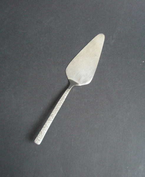 Dating from the 1960s is this small stylish, stainless steel cake lift by Viners. It is in the Studio pattern designed by the renowned silversmith Gerald Benney in the 1960s. This has a fabulous bark like texture to the handle. Marked to the handle STAINLESS STEEL STUDIO VINERS OF SHEFFIELD ENGLAND