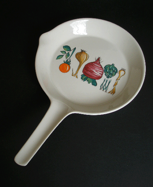 Dating to the 1960s is this Villeroy and Boch skillet or omelette pan. It is in the stylish Primabella design of vegetables. Impressed to the base VILLEROY & BOCH MADE IN LUXEMBOURG 2
