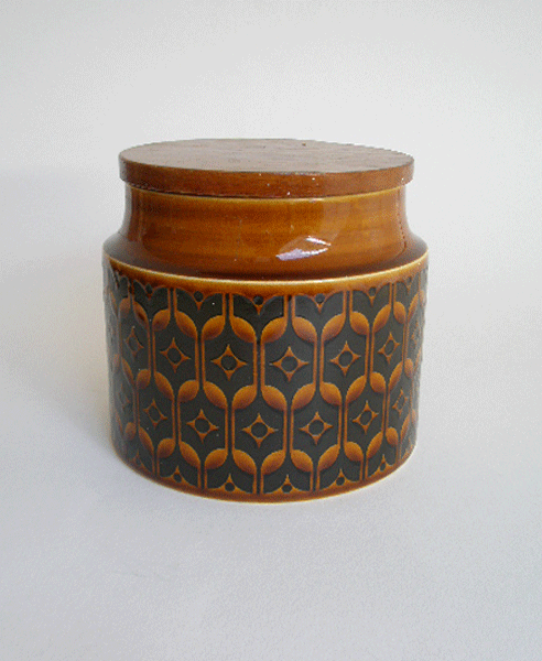 designed by John Clappison in 1967 and proved to be very popular. This has no named label so could be used to store any food stuff. It has a wooden lid.