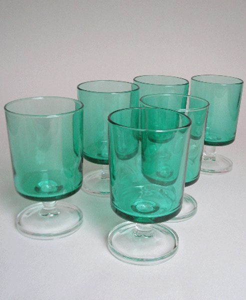 SET OF SIX FRENCH GREEN WINE GLASSES