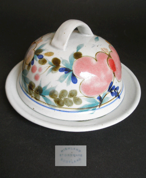 HIGHLAND STONEWARE VARIED FLORAL CHEESE / BUTTER DOME 1980s