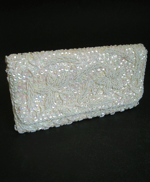 1960s WHITE BEADED AND SEQUINNED EVENING BAG
