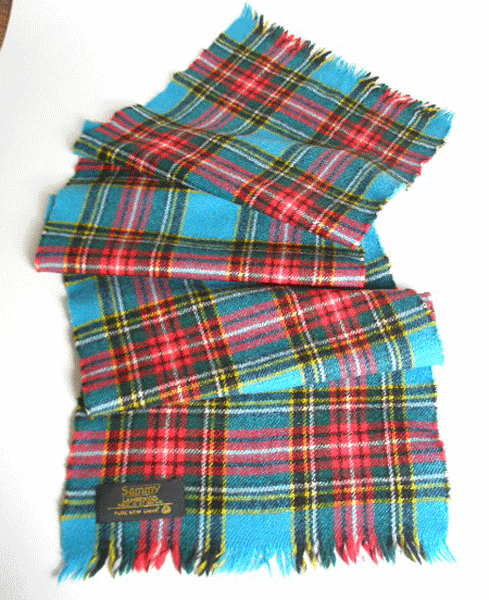 Here is a soft lambswool Sammy scarf in a tartan pattern with teal blue being the main colour. Would suit male or female. Label reads SAMMY LAMBSWOOL MADE IN GT. BRITAIN PURE NEW WOOL.