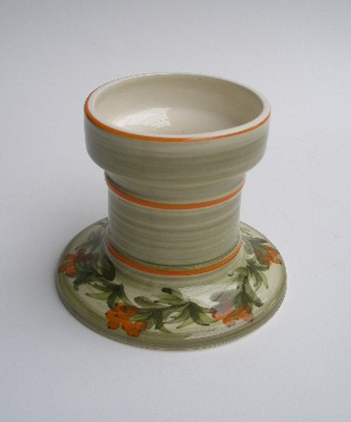 Here is a very retro candle holder from the renowned Jersey Pottery.It is hand-painted on an off-white ground