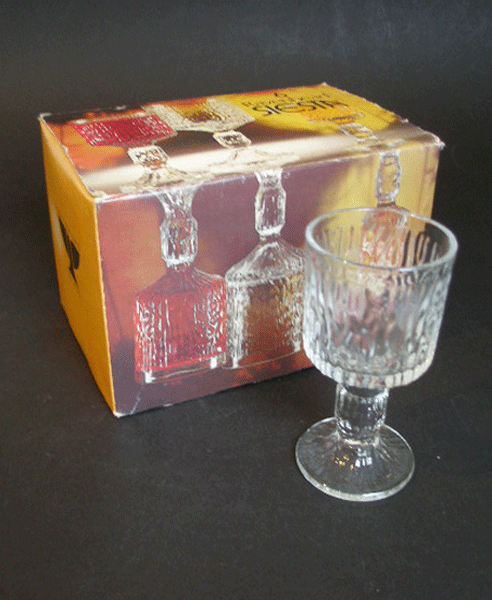 SIX RETRO RAVENHEAD SIESTA 7cl GOBLETS IN ORIGINAL BOX DESIGNED BY A H WILLIAMSON