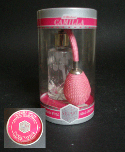VINTAGE STUART CRYSTAL CAMILLA PERFUME ATOMISER IN ORIGINAL PACKAGING