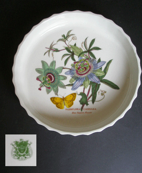 Dating to 1972 is this Portmeirion flan dish from the Botanic Garden range. It has the Passiflora Caerulea (Blue Passion Flower) design to the inside.Marked to the base THE BOTANIC GARDEN PORTMEIRION SUSAN WILLIAMS ELLIS DISHWASHER PROOF OVEN TO TABLE FREEZER AND MICROWAVE SAFE 1972.