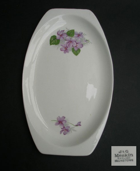 Here is an attractive sandwich plate by J&G Meakin with sprays of violets at either end. Marked to the base J&G Meakin ENGLAND IRONSTONE.