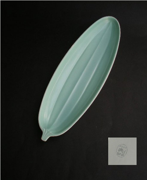 POOLE TWINTONE ICE GREEN AND SEAGULL CUCUMBER DISH STANDARD SIZE