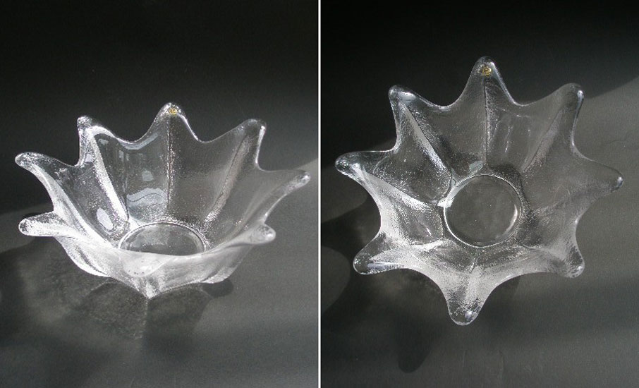 Dating from the 1980s is this large bowl designed by Frank Thrower for Dartington Glass as part of the ' Etoile Collection'. This is the deepest bowl in the 'Etoile' range and was advertised as the Star Dish for salad, fruit or nuts.