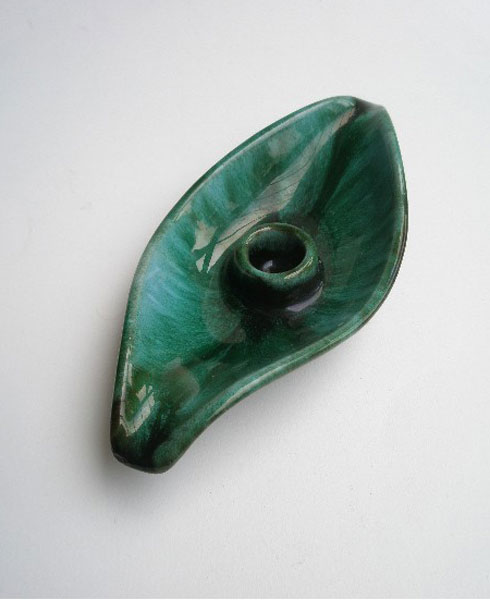 Here is a candle holder from Blue Mountain Pottery in the form of a leaf. Marked to the base with the three trees and CANADA.
