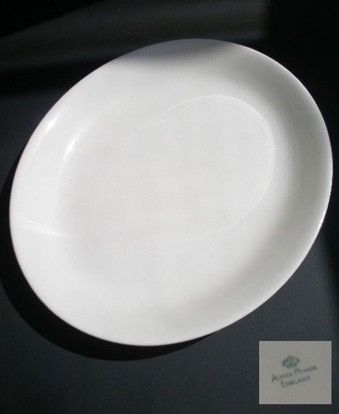 Here is a large,heavy, oval meat serving platter by Alfred Meakin. It is in a plain white and marked to the base in green with the crown and ALFRED MEAKIN ENGLAND.