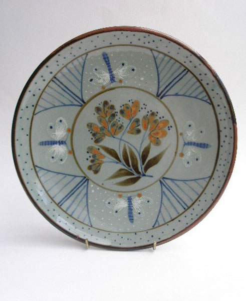 Dating to the 1970s is this unusual design by Linda MacLeod on the Celadon glaze. Linda MacLeod still works for Highland Stoneware at Lochinver and on a recent visit I was informed that this was a one- off piece and did not become part of their tableware range. It mixes well with plain Celadon pieces or brilliant for display. Marked to the back HIGHLAND STONEWARE SCOTLAND