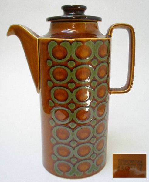 Bronte was first brought out by Hornsea pottery in the 1960s. It was designed by John Clappison and proved to be very popular.We have a matching milk and sugar.This is a lovely shaped coffee pot. Marked to the base HORNSEA ENGLAND.