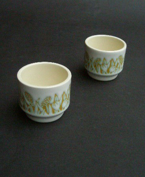 Here is a pair of Hornsea egg cups in Fleur design. Very retro easy to stack.Marked to the base HORNSEA MADE IN ENGLAND.