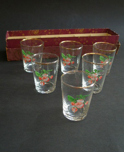 SIX 1960S BOXED ENAMELLED GLASSES IN ORIGINAL BOX