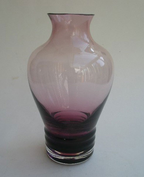 Here is a beautiful vase by Caithness glass in the heather colourway. It has a very heavy ribbed base with a deeper colour and is finer to the top. This is a lovely shape and looks good on display or in use with flowers. It still has the caithness sticker on the base.